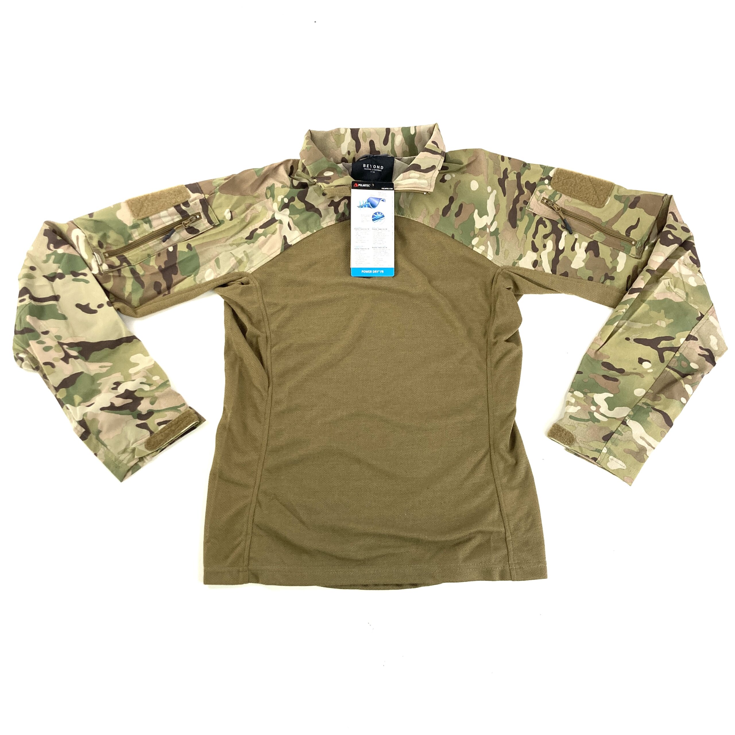 This is an Action Shirt from Beyond Clothing. The Action Shirt is made of a Tweave Durastretch and Polartech Power Dry Flame Resistant material making this shirt abrasion and fire resistant, breathable, highly packable and water resistant (DWR coating). Design features of the Action Shirts are loop fields on shoulders, hook and loop adjustable sleeve cuffs and a 1/4 zip closure. Technical features include wind and water resistance, breathability, 4-way stretch fabric and lightweight construction.