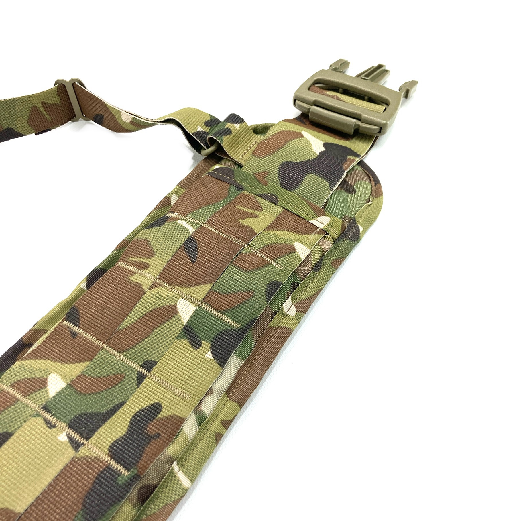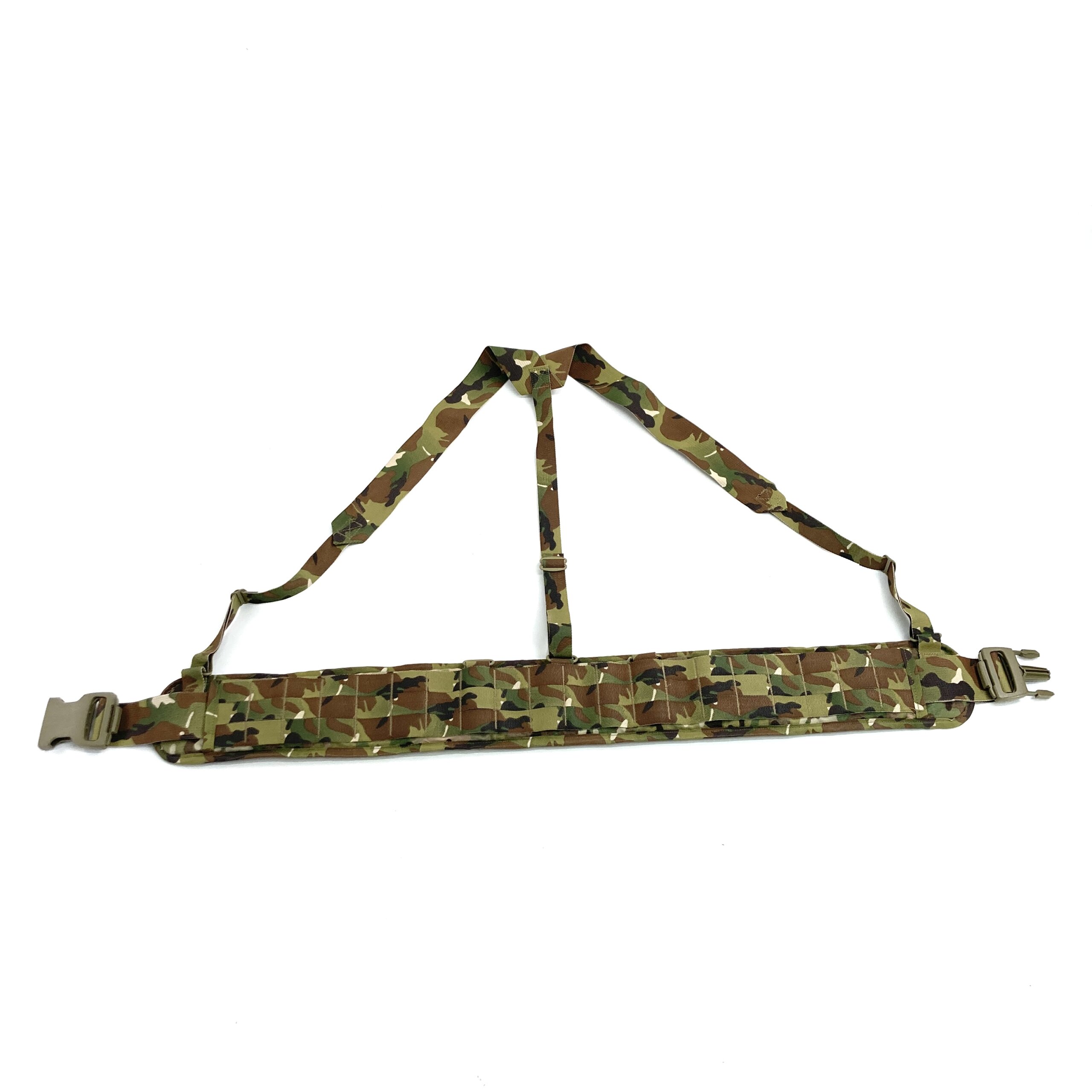 These are Eagle Industries ILBE Sub Belts. These belts are an Eagle produced version of the USMC Sub Belt. All the features of the USMC Sub Belt are present with the only exception being the color. The ILBE Sub Belt features a 2 inch buckle closure, padded belt backing, generous amounts of MOLLE webbing (3 rows high) as well as featuring suspender points for both 3 and 4 point suspenders. Included with each belt is a set of 3 point suspenders to help you get the weight off your hips when carrying those heavier loads. Overall, these are a great add to any kit when there’s a need to bring more equipment to the party than your mainline kit can support!