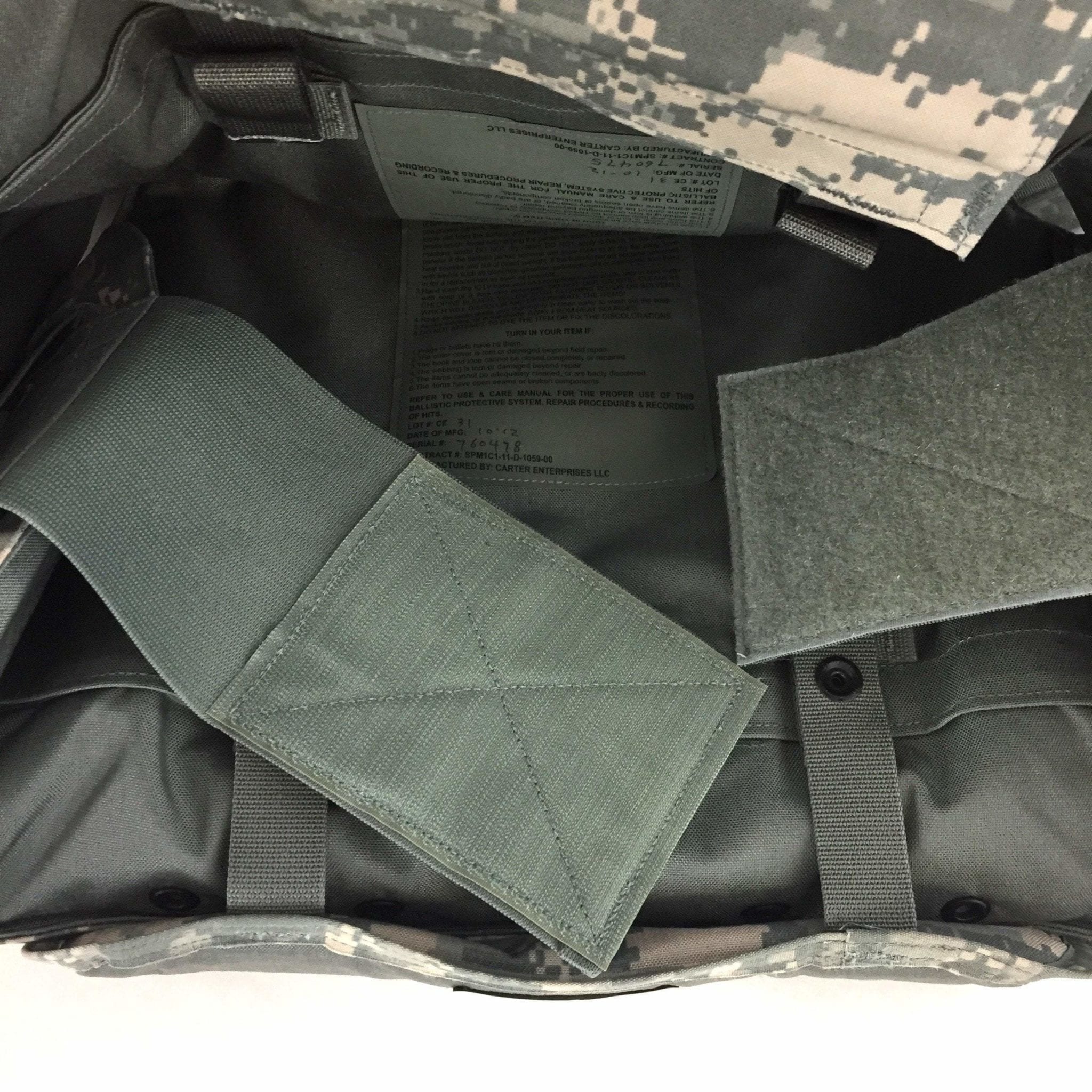 This new complete GEN I Improved Outer Tactical Vest in ACU is the improved version of the US Army’s Interceptor Body Armor. This vest improves the wearers threat protection when worn with all body armor components compared to the US Army’s Interceptor Body Armor with all body armor components. The Small Arms Protective Insert provides protection from fragmentation and 9mm bullets. The Improved Outer Tactical Vest enables the wearer to place more of the weight on their waist and less on their shoulders with a elastic waistband. This lessens the fatigue on the wearer compared to the Interceptor Body Armor which places all the armors weight on the shoulders.