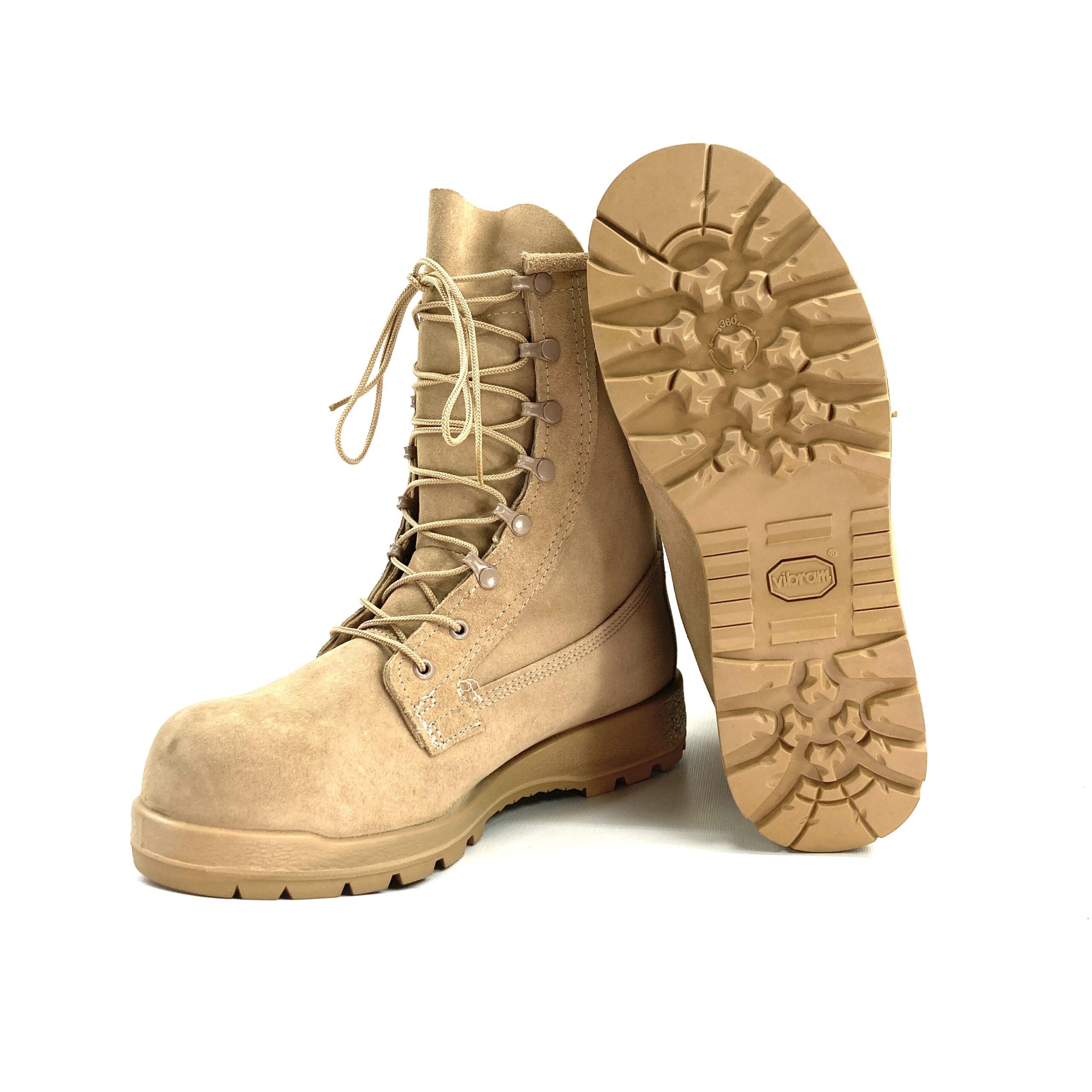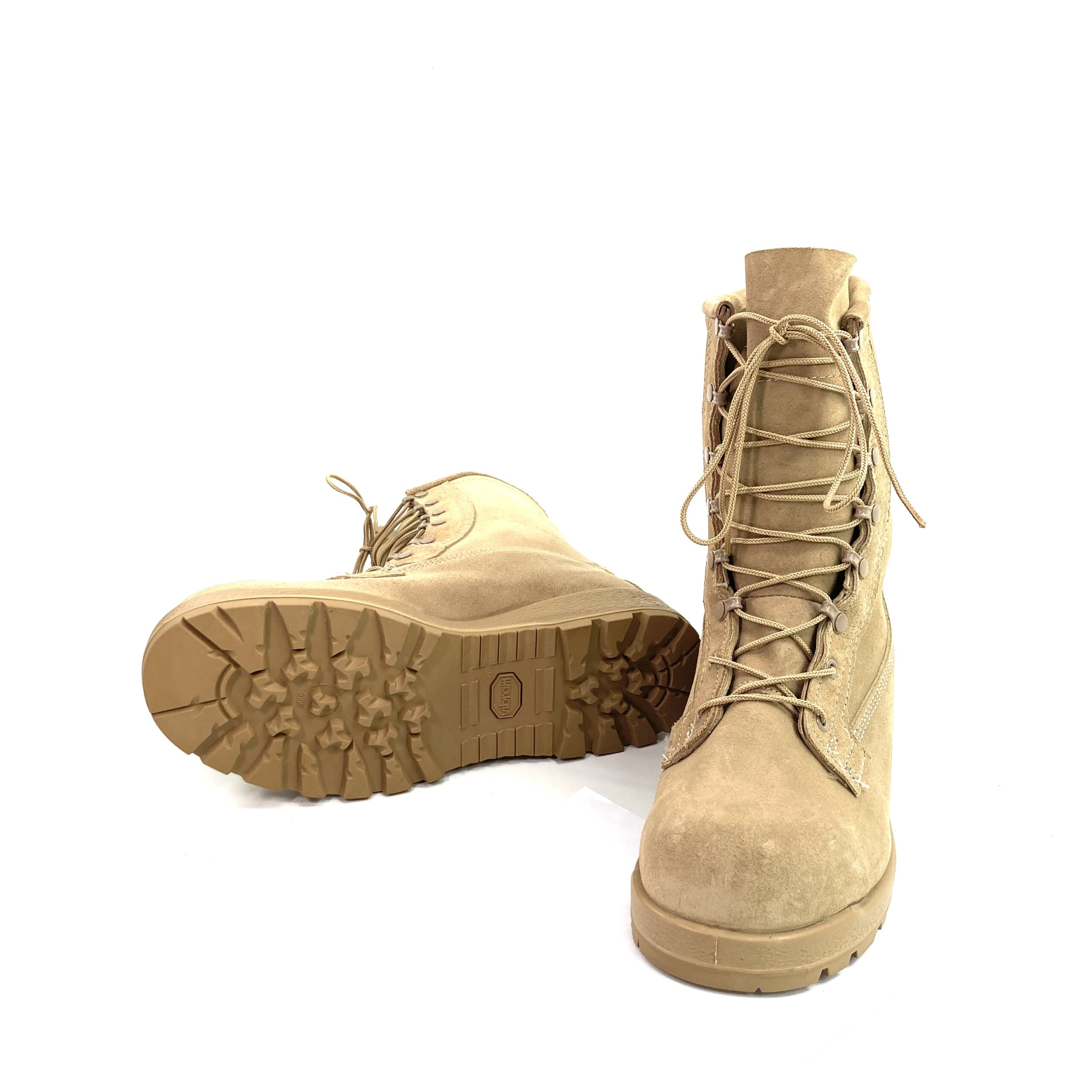 These are US Army Intermediate Cold-Wet (ICW) Boots in Desert Tan. These Boots were issued to US Army personnel for use in intermediate cold or wet operational environments. Boots conform to the Department of the Army’s Pamphlet 670-1 (DA PAM 670-1) regulations on boots. However due to the Army’s adoption of OCP these regulations were updated, making the Desert Tan version of ICW Boot no longer regulation for wear on duty as of October 2019. These ICW Boots feature a desert/ sand colored, rough side out cattle leather construction with GORE-TEX lining, a polyurethane midsole for shock absorption, Rubber outer sole with lug pattern for traction, closed loop speed lace system and are compatible with ICW Boot Liners for additional insulation. The ICW boot is rated for use in cold or wet environments that range from 14 to 60 degrees Fahrenheit making them a great choice for use during those fall to winter months. Outside their usage within the military, the ICW Boot has long been a favorite of the outdoor adventurers or just about anybody in outdoor labor jobs for their robust construction and weather resistance that provides great foot protection at far more affordable costs. So, whether you need some new boots for formation, the jobsite or that next adventure you’re going on make sure to add a pair of are US Army Intermediate Cold-Wet Boots in Desert Tan to your gear today!