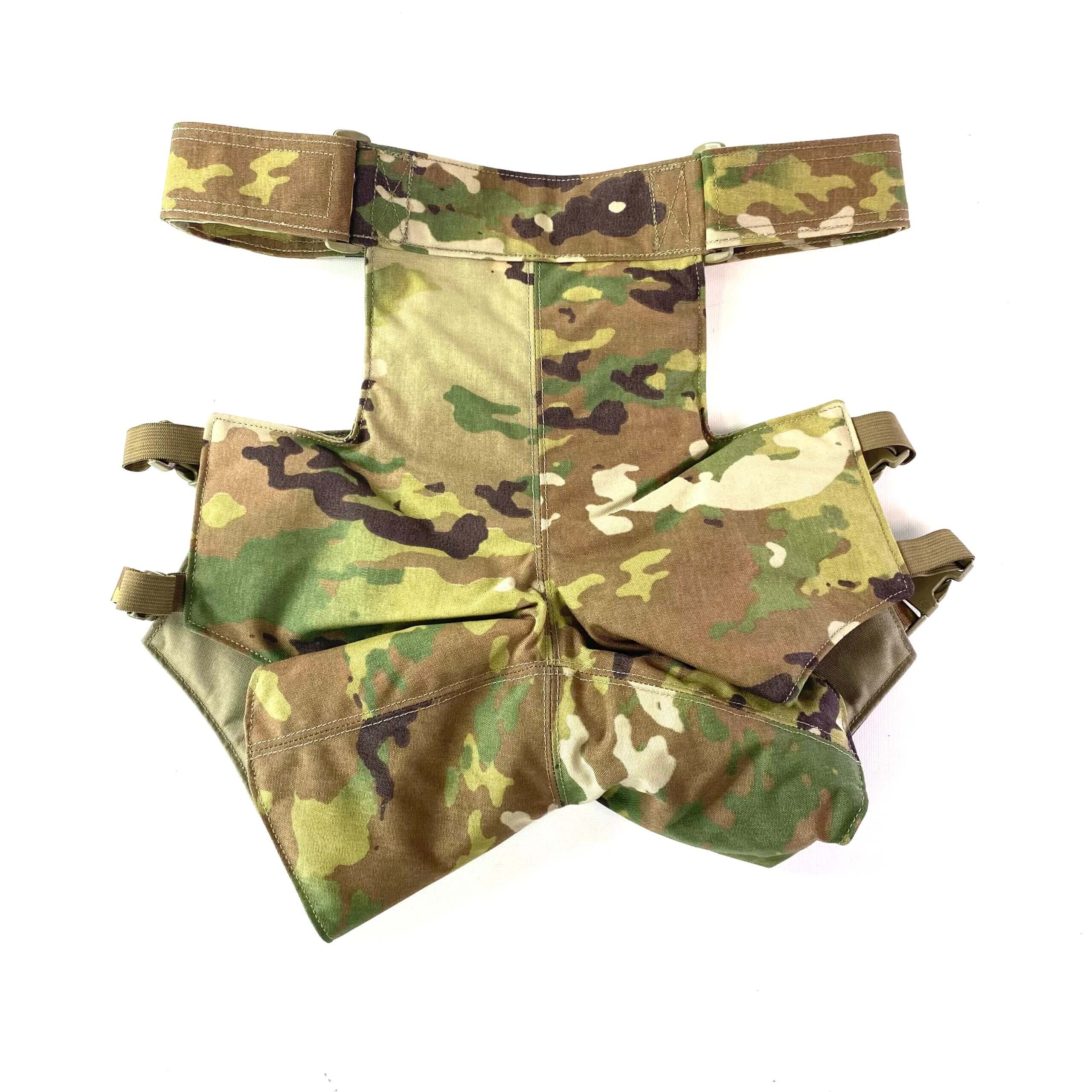 This is a Pelvic Blast Protector that is used by the US Military. It wraps around your leg and waist with adjustable straps, and provides protection for your thighs and groin. The leg straps use 3/4″ buckles while the waist uses 2 inch webbing with hook and loop. The soft armor insert is sewn in and cannot easily be removed. Overall this is a great way to protect your precious cargo from shrapnel and such.