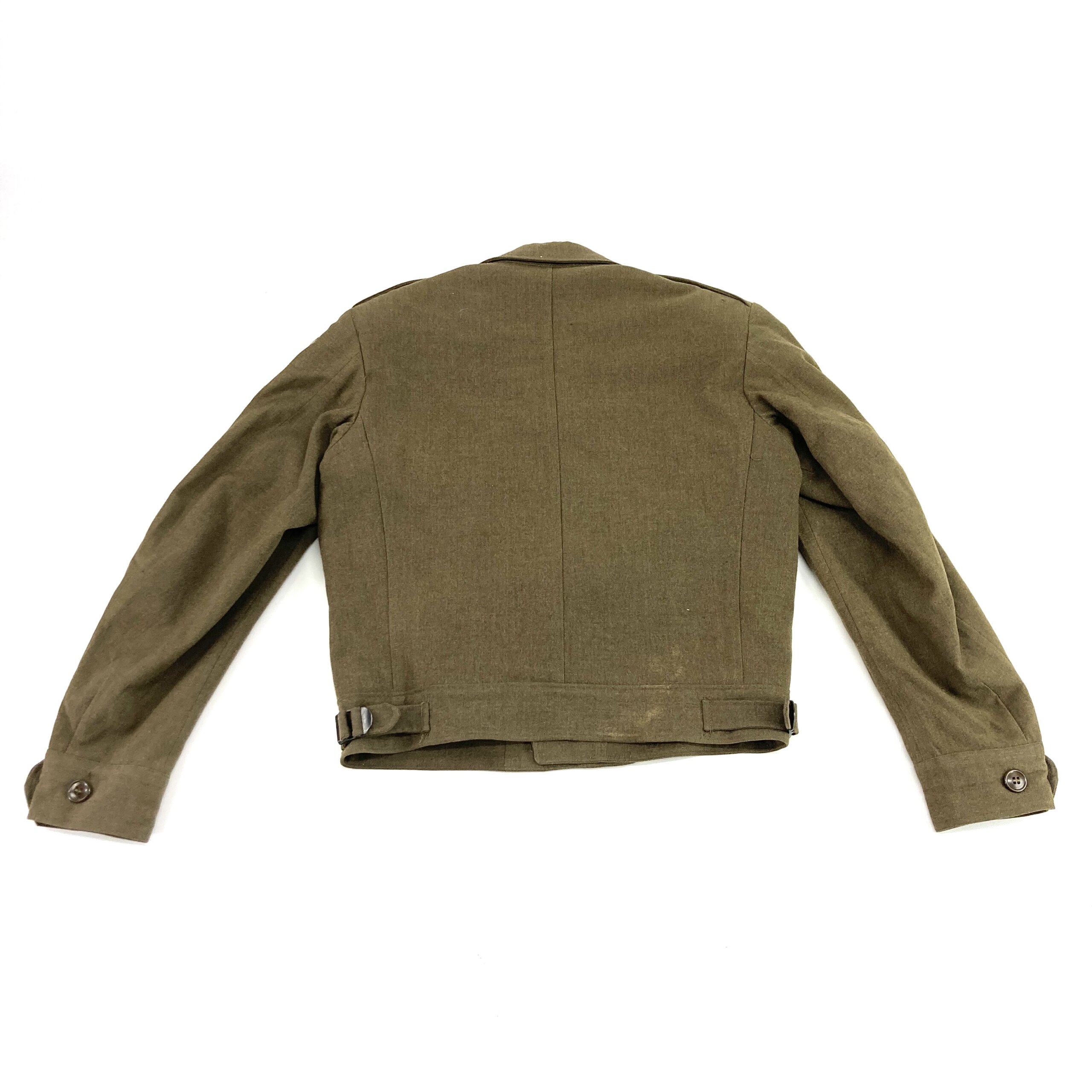 The Ike Jackets we have available are from the post WWII into the Korean War era. These jackets feature a wool construction, button closure, waist adjusters, button cuffs, shoulder epaulettes and 2 buttoned chest pockets. All of the available jackets were used at some point or another and may have patches from their previous owner’s, at this time we cannot fulfill requests for specifically a patched or non patched jacket. These jackets are a super cool piece of 20th century war history and are perfect for collectors and reenactors alike.